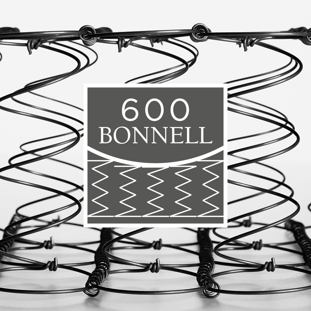 Il molleggio 600 SBS BONNELL realizzato con molle in acciaio, di diametro ridotto, caratterizzate dalla forma biconica, genera un molleggio di grande portanza in grado di rispondere alle sollecitazioni con efficacia, stabilità e di sostenere ed accogliere correttamente il corpo. La struttura garantisce un sostegno attivo con elevata portanza che rimane ottimale nel tempo.