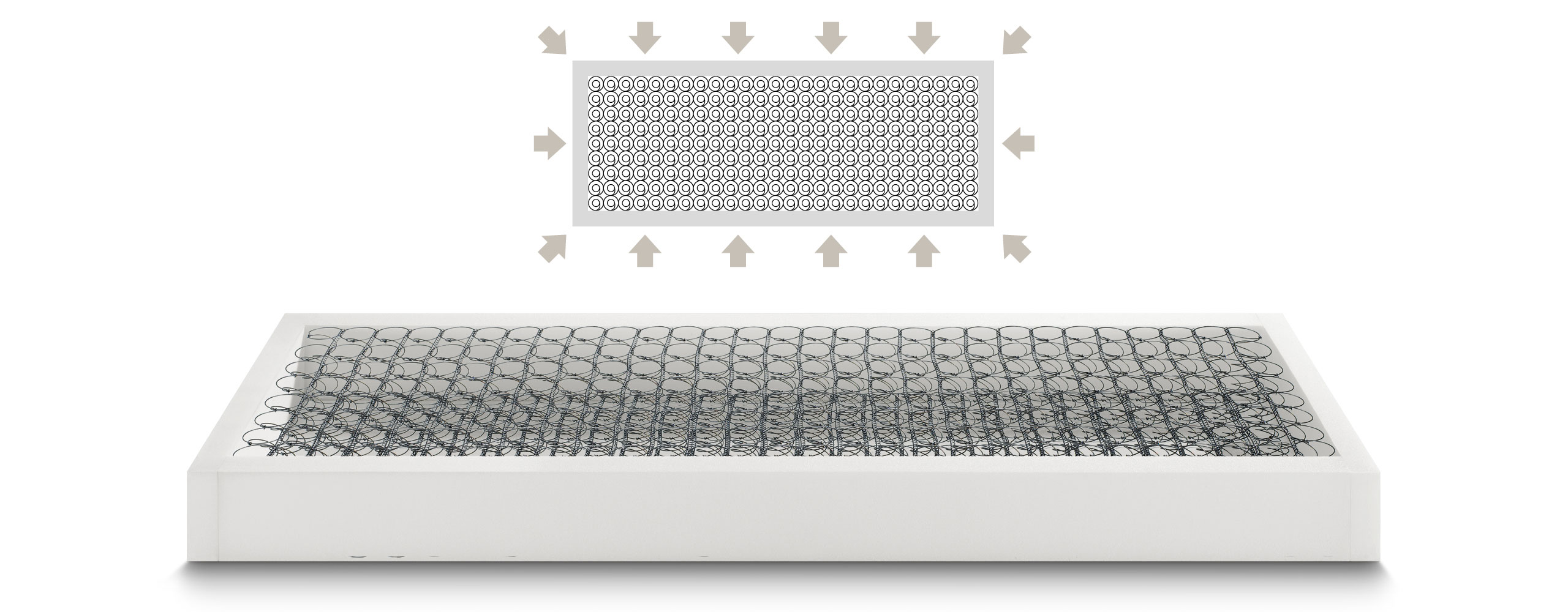 Il sistema parametrico TOP BOX è una struttura perimetrale rinforzata, in PRO-ATTIVA ad alta densità, che contiene il molleggio. TOP BOX garantisce robustezza, indeformabilità alla struttura e mantiene le caratteristiche di sostegno anche quando ci si siede sul bordo del materasso. Questo innovativo sistema è stato studiato ed ideato per aumentare l’ergonomia di comfort del 15%.